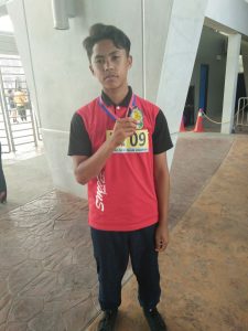 Muaz Bin Zul Hilmei menerima Pingat Perak untuk Acara Lempar Cakera L15