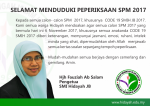 Kepada semua calon- calon SPM 2017, khususnya CODE 19 SMIH JB 2017. Kami semua warga