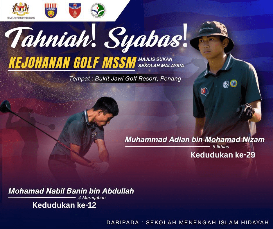 Alhamdulillah, dua orang murid dari SMIH telah mewakili sekolah dalam Kejohanan Golf MSSM 2025 yang berlangsung di Bukit Jawi Golf Resort, Pulau Pinang pada 27/05/2025 hingga 29/05/2025 yang lalu.