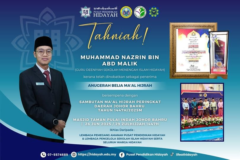 Pusat Pendidikan Hidayah mengucapkan setinggi-tinggi tahniah kepada
